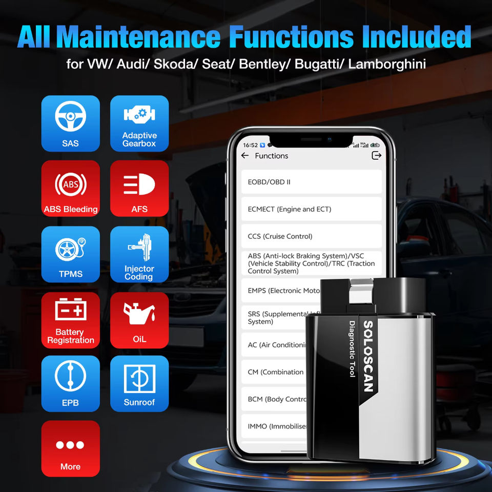 โซโลสแกน ออดี้ สมาร์ท ไดนาสติกส์ เครื่องสแกนระบบเต็มรูปแบบ เทคโนโลยี ELM327 ให้ความรู้สึกที่ทันสมัย