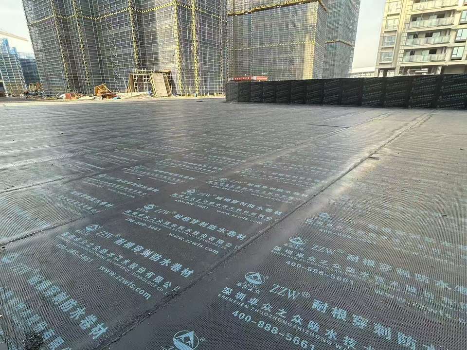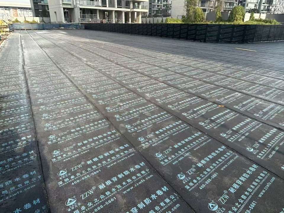แก้ปัญหาการปลูกต้นไม้บนหลังคา การกันซึมใต้ดิน แผ่นเมมเบรนยางมะตอย/PE แบบติดเอง ทนต่อรากไม้ สำหรับงานหลังคาบ่อ/สระน้ำ