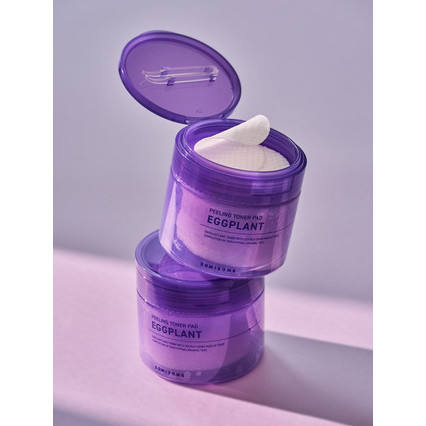Somisome Eggplant Peeling Toner Pads 50 Sheets Vegan PHA Ingredients for Oily & Sensitive Skin Acne Treatment