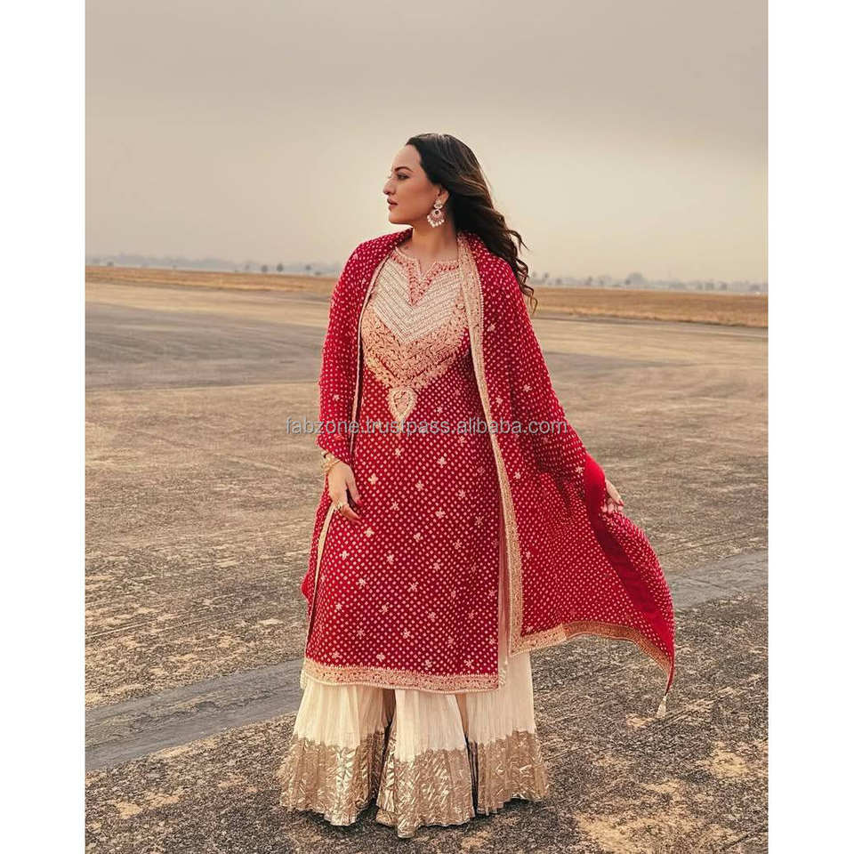 Sonakshi Sinha Red Color Women's Sharara Set for Weddings Inspired by Actress Style