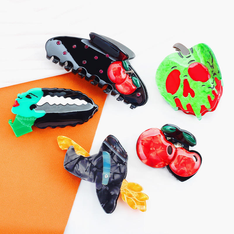 Songmay คลิปหนีบผมผู้หญิงแบบประกบชุดสยองขวัญฮาโลวีนใหม่คุณภาพสูงคลิปหนีบผมอะซิเตทสำหรับเทศกาลฮาโลวีน