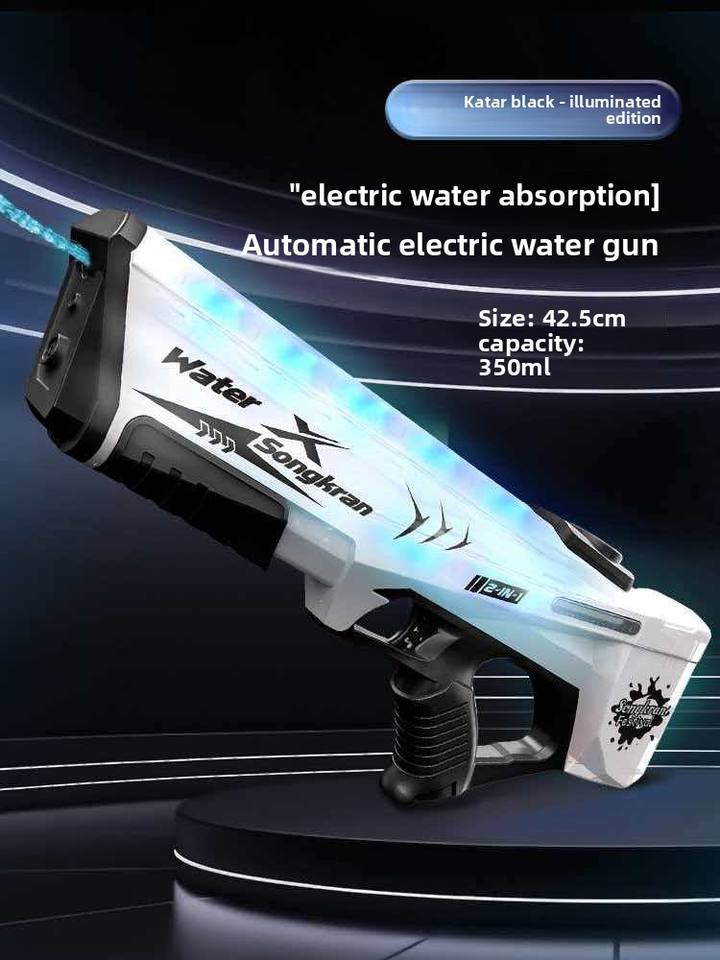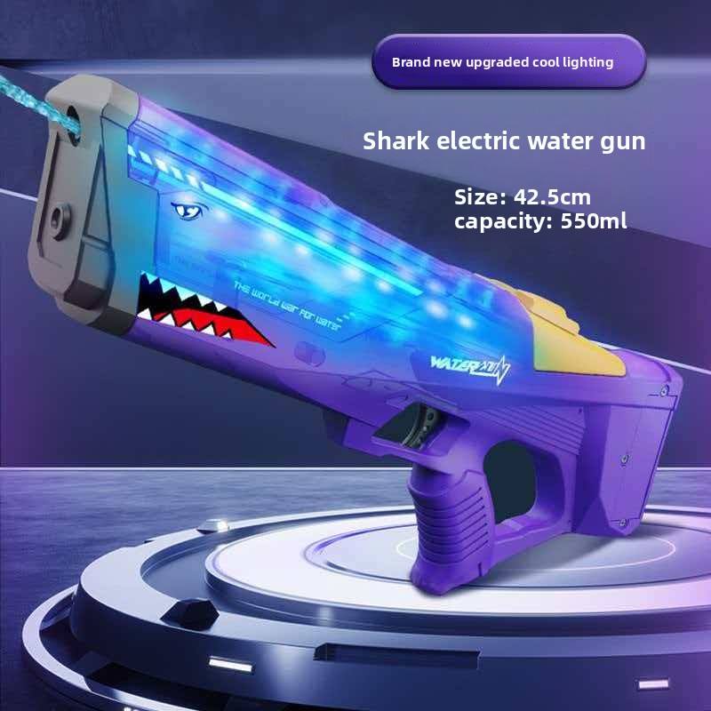 ปืนฉีดน้ำพลาสติกไฟฟ้ารูปฉลาม สำหรับเทศกาลสงกรานต์ พร้อมไฟ ของเล่นอัตโนมัติ ความจุสูง สำหรับเด็กอายุ 2-4 ปี