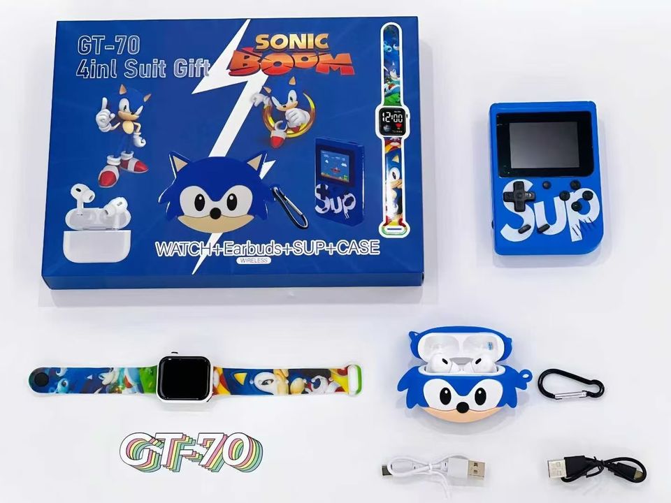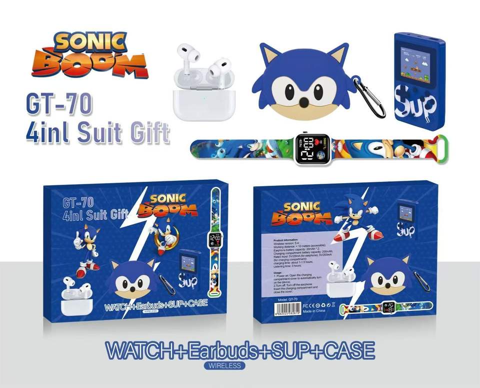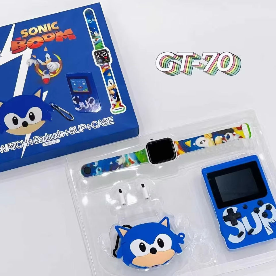 ชุดของขวัญโซนิคเดอะเฮดจ์ฮ็อกแบบ4อิน1: หูฟังไร้สาย + สมาร์ทวอทช์ + คอนโซลเกม + เคส-GT70กล่องของขวัญอิเล็กทรอนิกส์สำหรับเด็ก