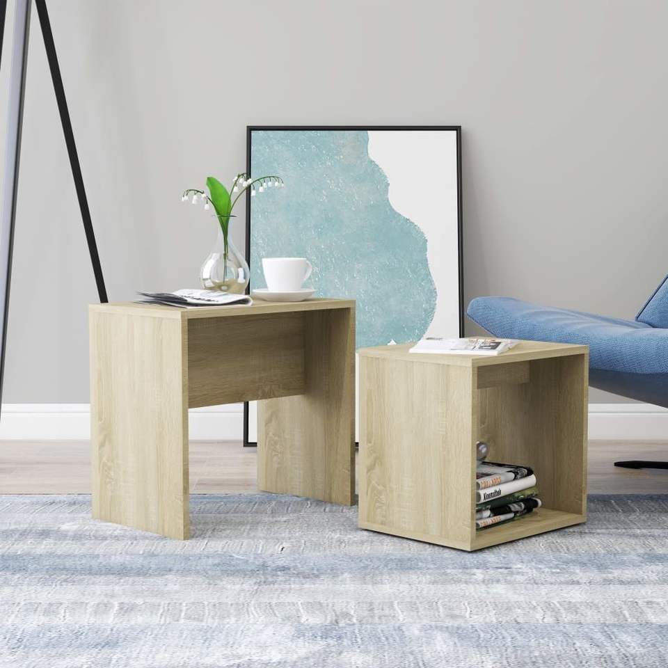 โต๊ะกาแฟไม้โอ๊คโซโนมาแบบวางซ้อนกันได้ขนาดเล็ก