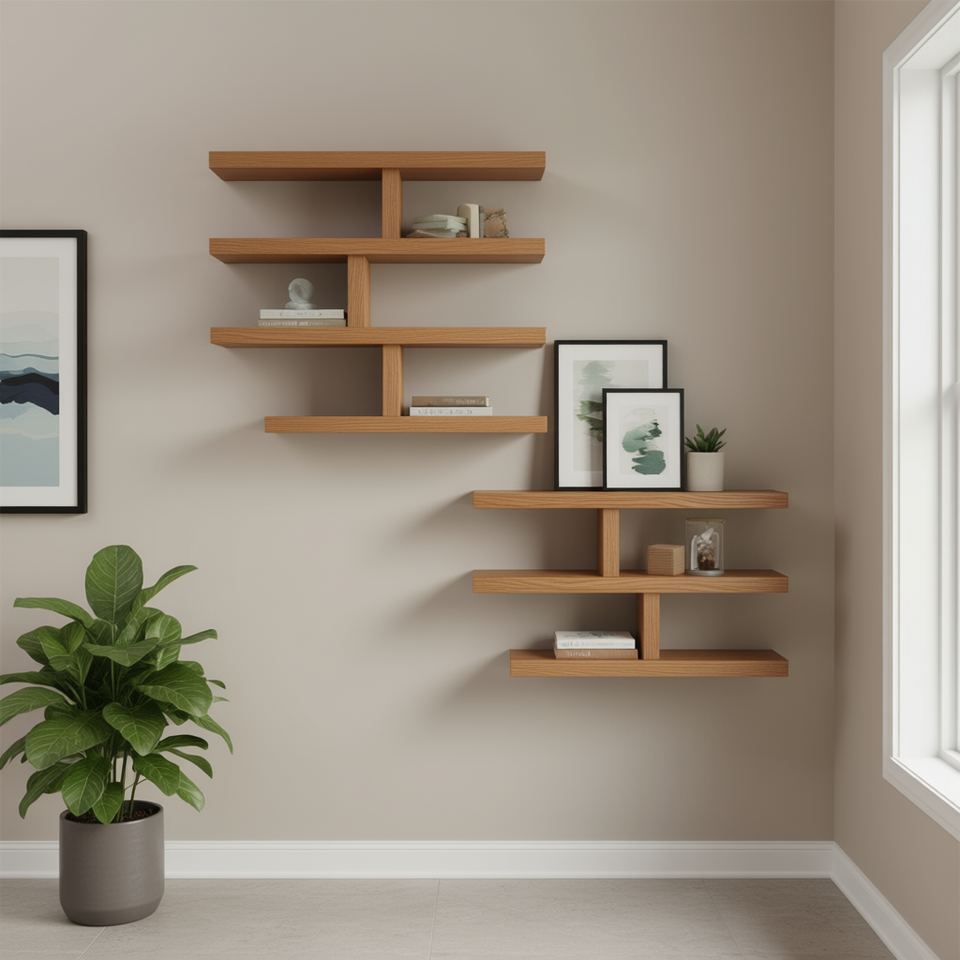 ชั้นวางของติดผนังไม้โอ๊คโซโนมา 8 ชั้น สีน้ำตาล รูปทรงสี่เหลี่ยมผืนผ้า ดีไซน์เรียบง่าย สำหรับจัดเก็บของในห้องนั่งเล่น