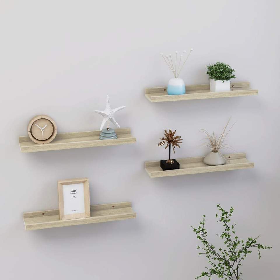 ชั้นวางของติดผนังไม้โอ๊คโซโนมา MDF รุ่นโมเดิร์น ชุด 4 ชิ้น ขนาด 15.7 x 3.5 x 1.2 นิ้ว ชั้นวางโชว์