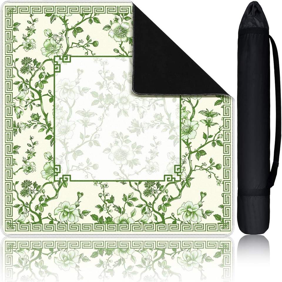 Sonwyoung Chinoiserie แผ่นไพ่นกกระจอกกันลื่น31.5 "x 31.5" ยางสีเขียวลดเสียงรบกวนอเนกประสงค์แผ่นเกม