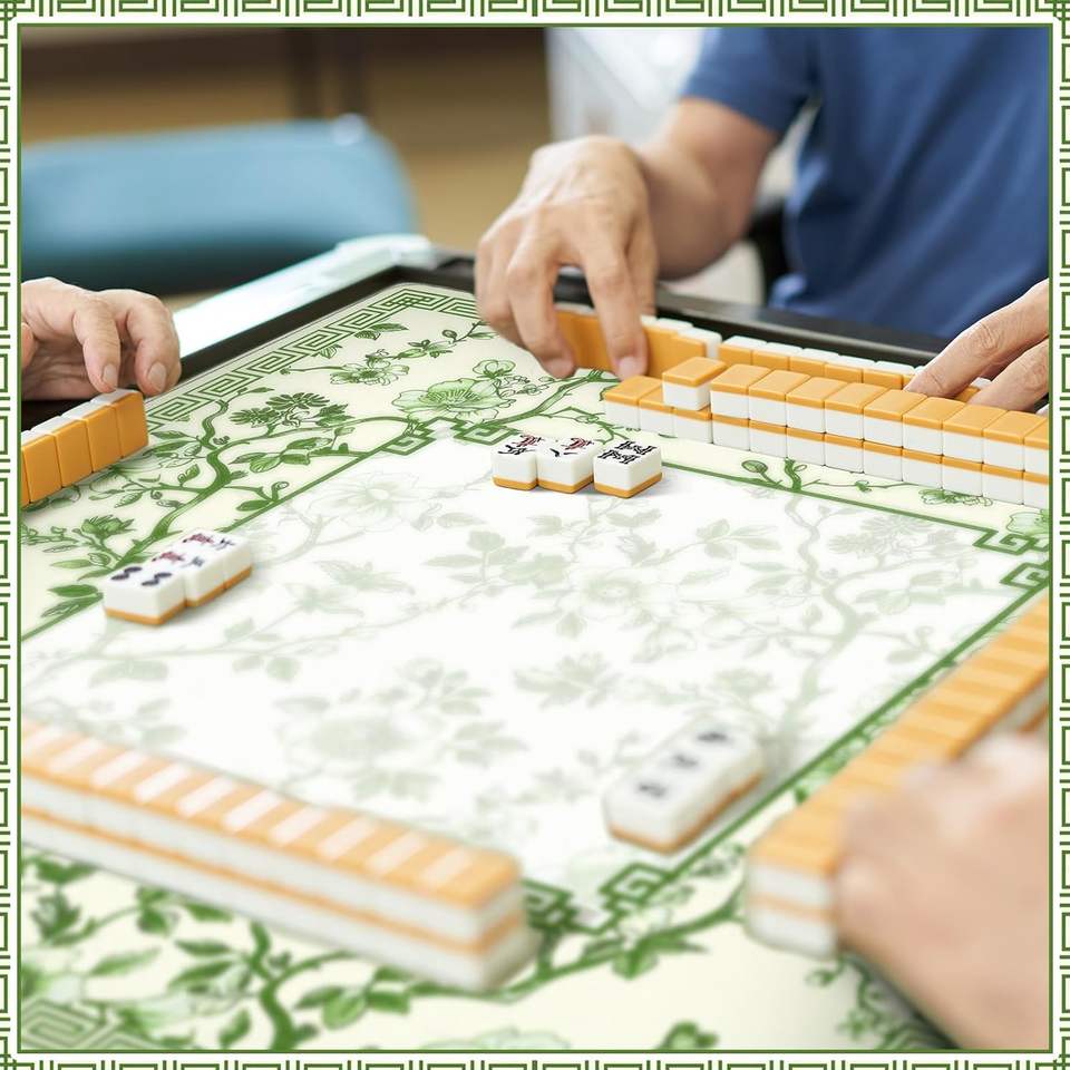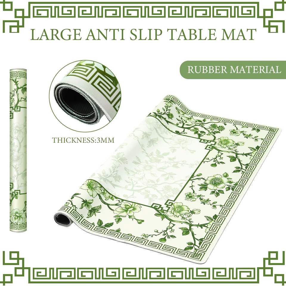 Sonwyoung Chinoiserie แผ่นไพ่นกกระจอกกันลื่น31.5 "x 31.5" ยางสีเขียวลดเสียงรบกวนอเนกประสงค์แผ่นเกม