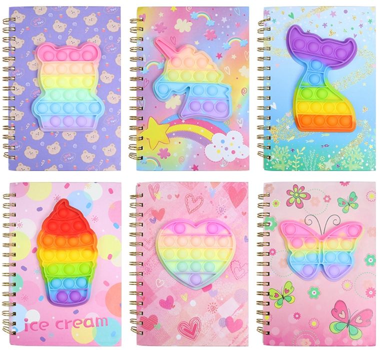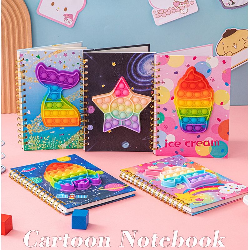 Soododo สมุดซิลิโคน A5สำหรับนักเรียนแบบมีฟองพิมพ์ลายการ์ตูนสมุดบีบอัด A6โลหะสีรุ้งสำหรับใช้ในโรงเรียน
