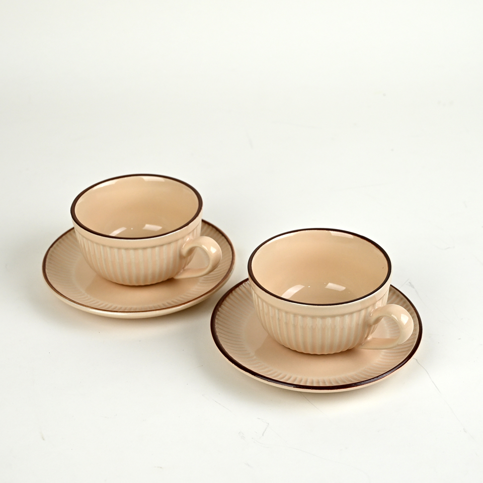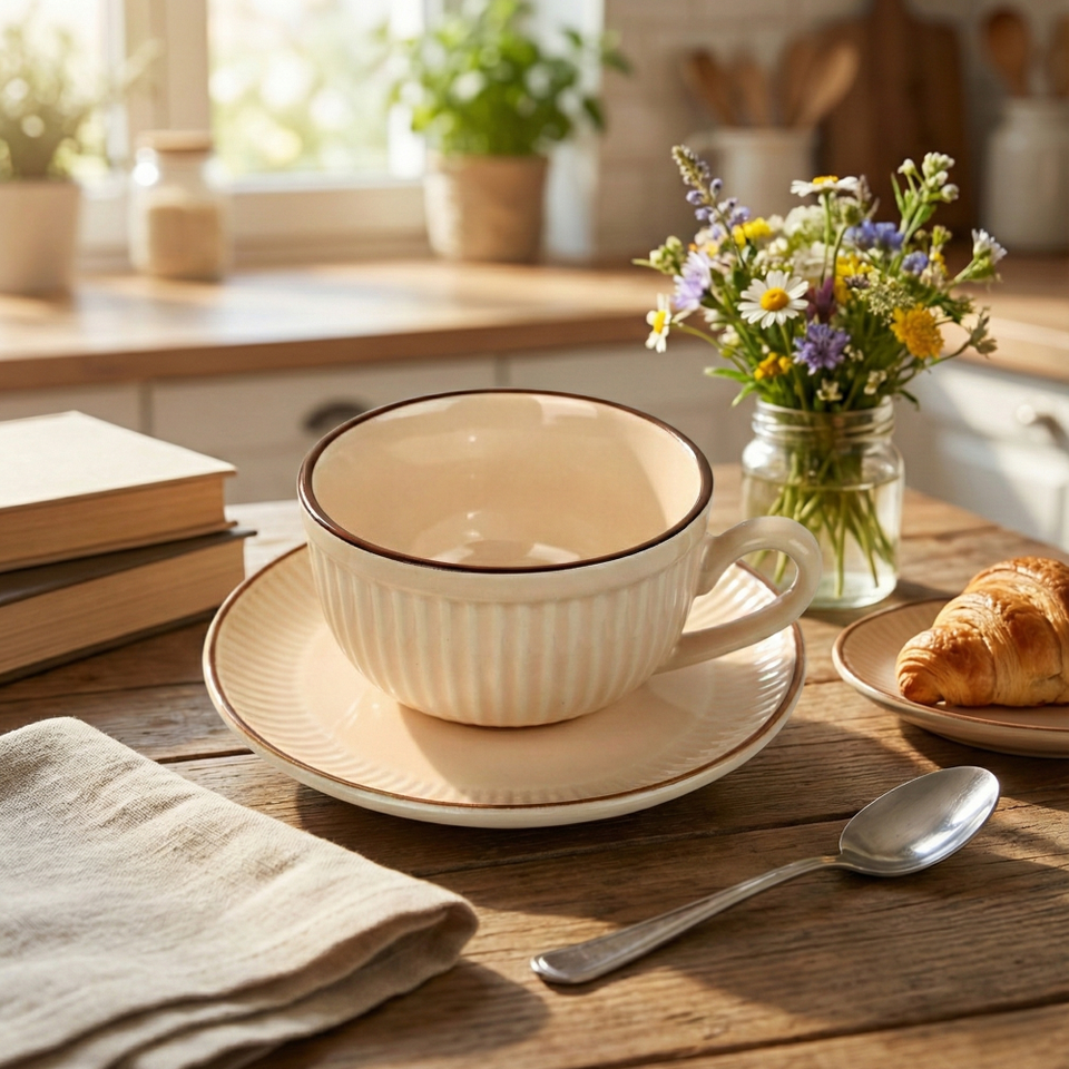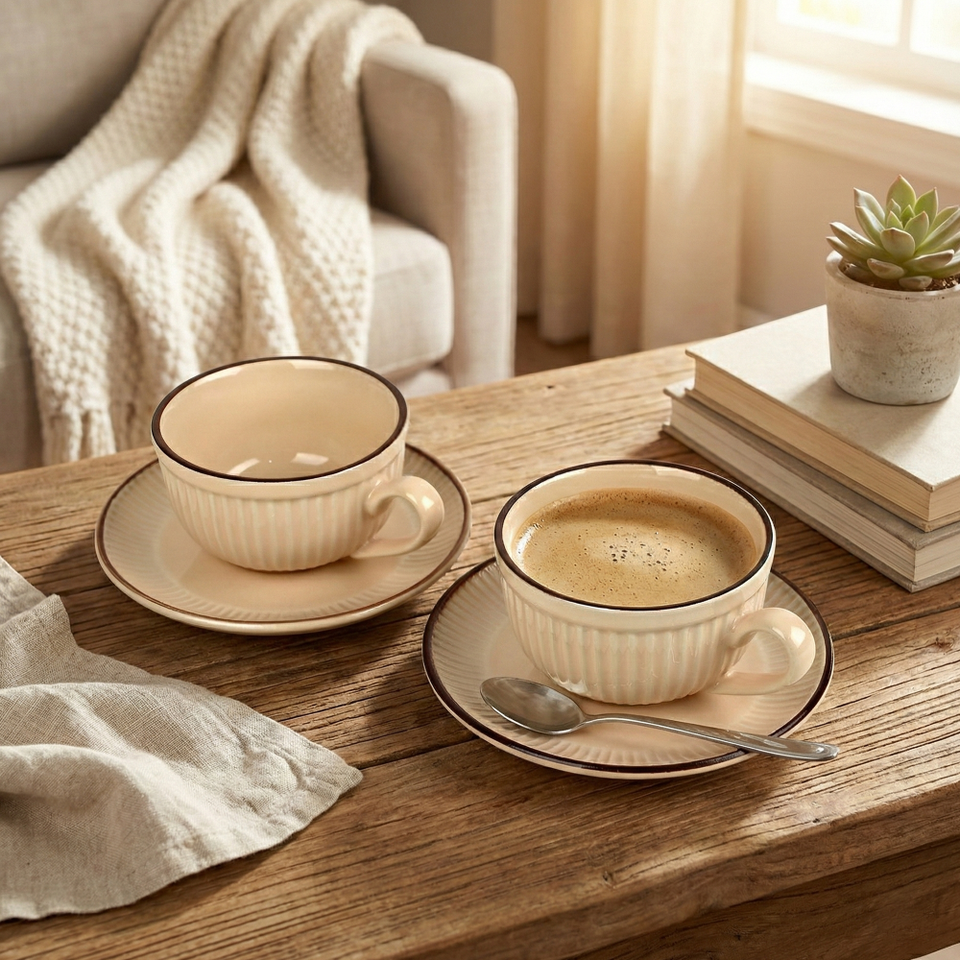 ปลอบประโลมประสาทสัมผัสของคุณด้วยชุดถ้วยชาและจานรองสไตล์เรโทรสุดหรูทำจากนิวโบนไชน่า พร้อมโลโก้ที่ปรับแต่งได้ สำหรับชุดน้ำชายามบ่าย จำนวน 2 ชิ้น