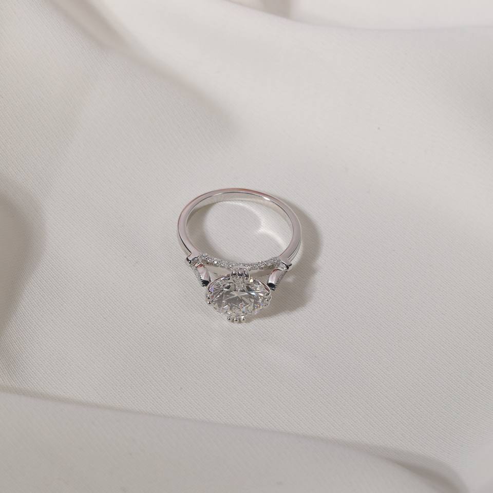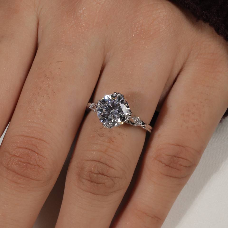 แหวนหมั้นเพชรเม็ดเดี่ยว Sophia Cut 3.08 กะรัต เพชรเลี้ยงในห้องปฏิบัติการ ชุบทอง 14K ตัวเรือนหนา 8 มม. รับรองโดย IGI ดีไซน์คลาสสิกสำหรับผู้หญิง