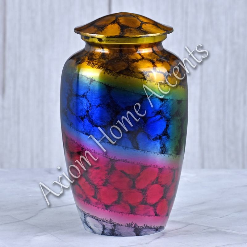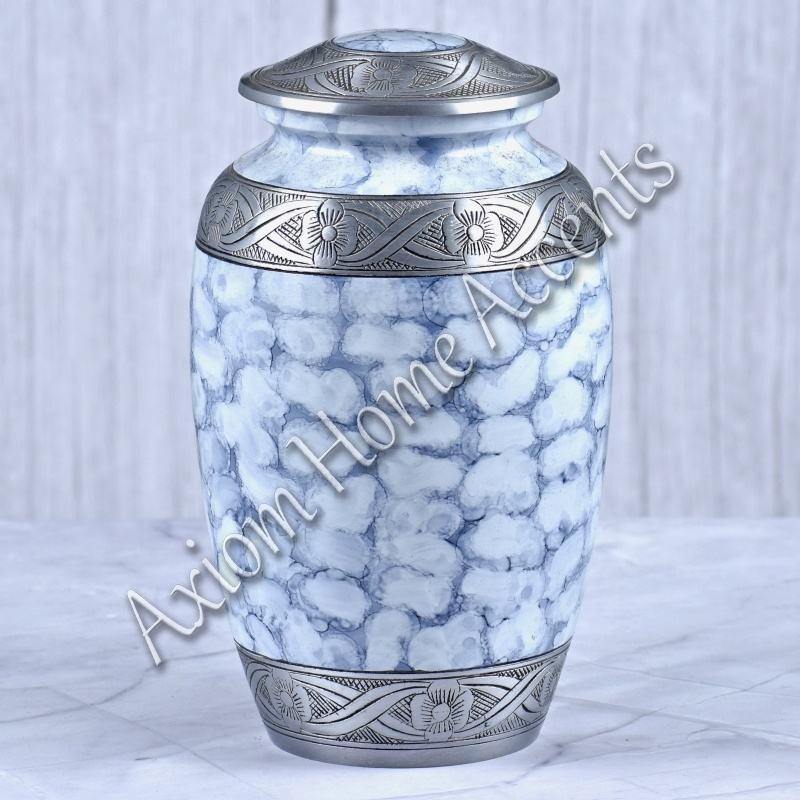 โกศเผาศพอลูมิเนียมที่มีความซับซ้อนโดยมีรายละเอียดของช่างฝีมือโกศที่สวยงามด้วยการเน้นที่บ้านของสัจพจน์