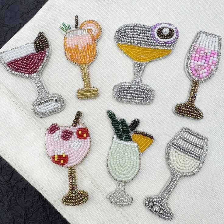 ชุดเข็มกลัดแก้วค็อกเทลดีไซน์หรูหรา ปักด้วยลูกปัดและคริสตัลด้วยมือ สำหรับติดเสื้อผ้าผู้หญิงในงานปาร์ตี้ยามเย็น