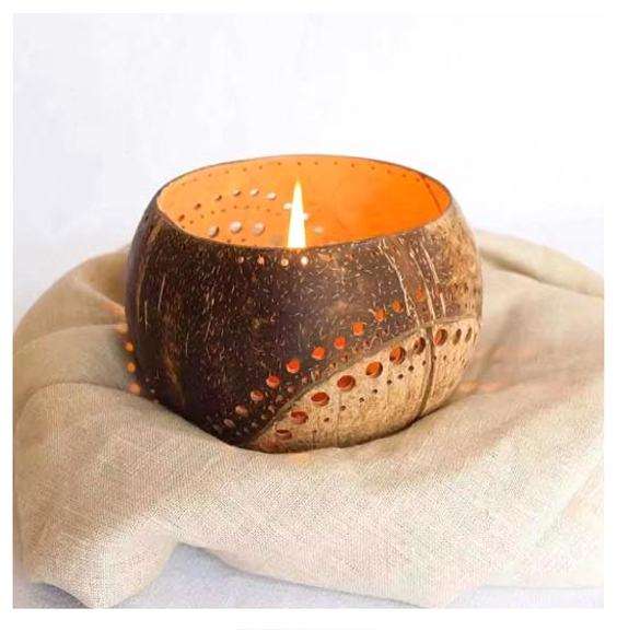 ที่วางเทียนเปลือกมะพร้าวสุดหรู ดีไซน์ลายรัศมีดวงอาทิตย์ ทำด้วยมือ เป็นมิตรต่อสิ่งแวดล้อม ใช้กับเทียนทีไลท์ ตกแต่งภายในอย่างเป็นธรรมชาติ