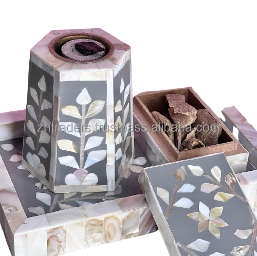 Sophisticated Handmade Pearl Glow Mother of Pearl Inlay Mubkhar Set Designed for Arabic Wedding Gifts Ramadan and Home Fragrance