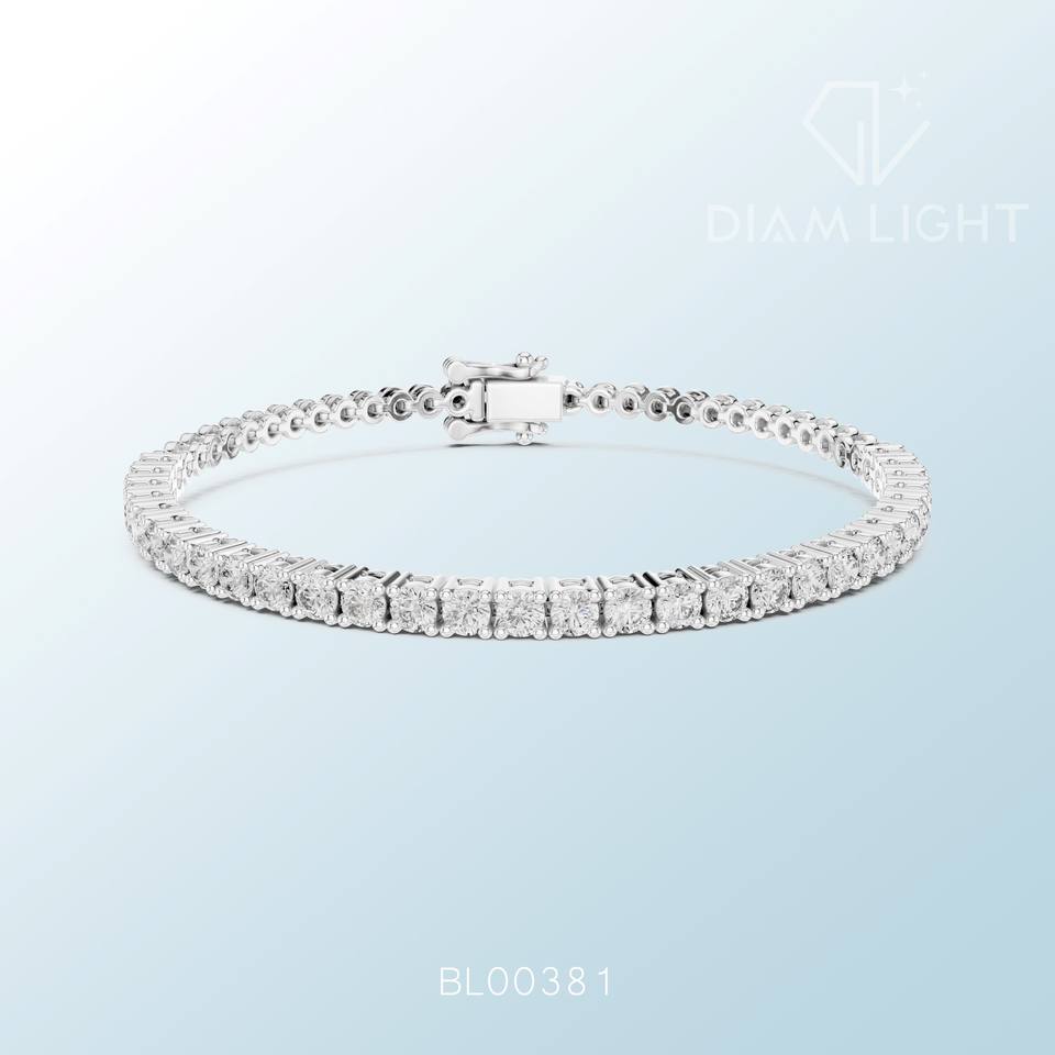 สร้อยข้อมือทรงกลมสีขาว ประดับเพชรเทียมทรงกลม ได้รับการรับรองจาก IGI ดีไซน์เครื่องประดับที่หรูหรา สง่างาม และเหนือกาลเวลา