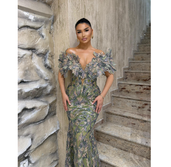 ชุดราตรีทรงเมอร์เมดยาวกรอมพื้นสำหรับผู้หญิง ดีไซน์หรูหรา ประดับด้วยลูกปัด ดูสง่างาม ผ้าระบายอากาศดี มีซับใน