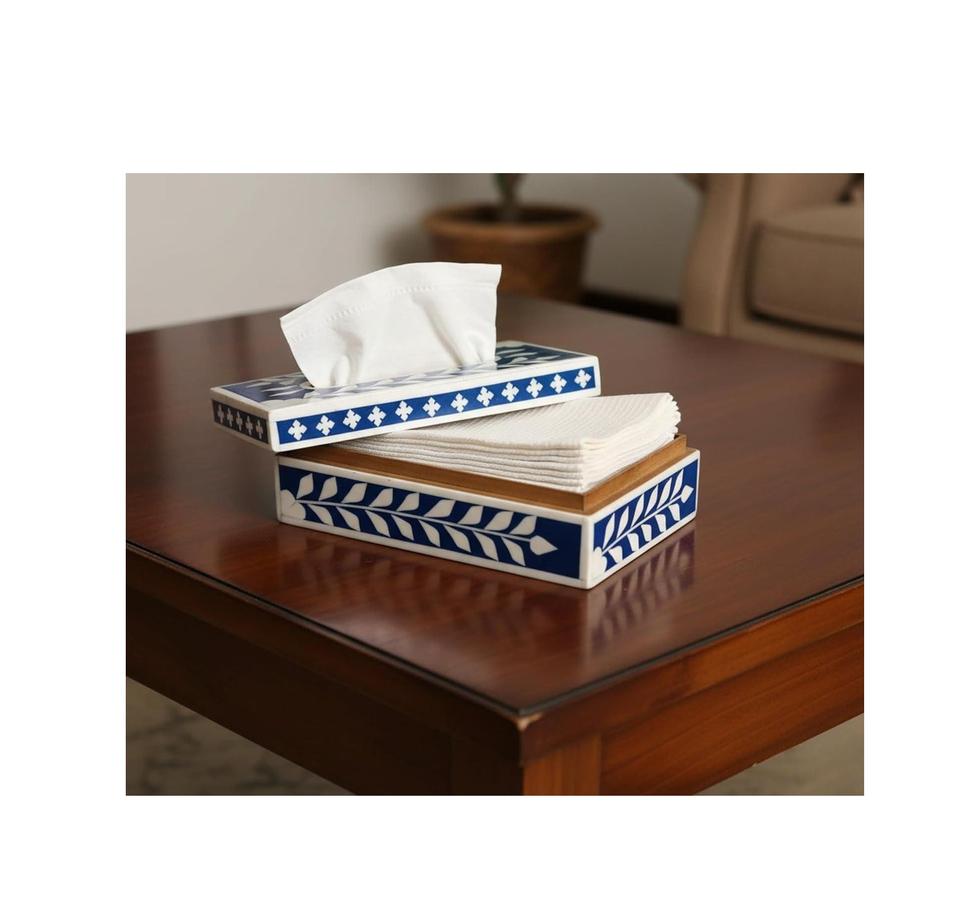 Sophisticated handmade bone inlay resin tissue box for stylish bedroom dresser organization