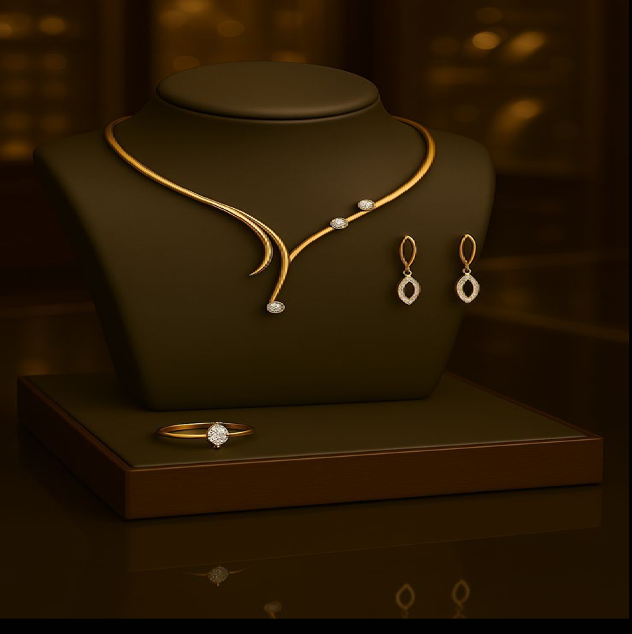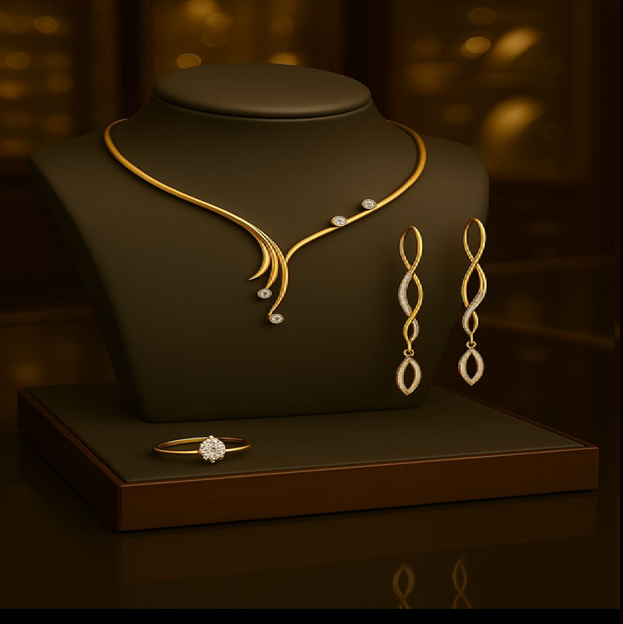 ชุดเครื่องประดับรูปหยดน้ำสุดหรู ประกอบด้วยสร้อยคอทันสมัยและแหวนเข้าชุด มีจำหน่ายในราคาขายส่ง