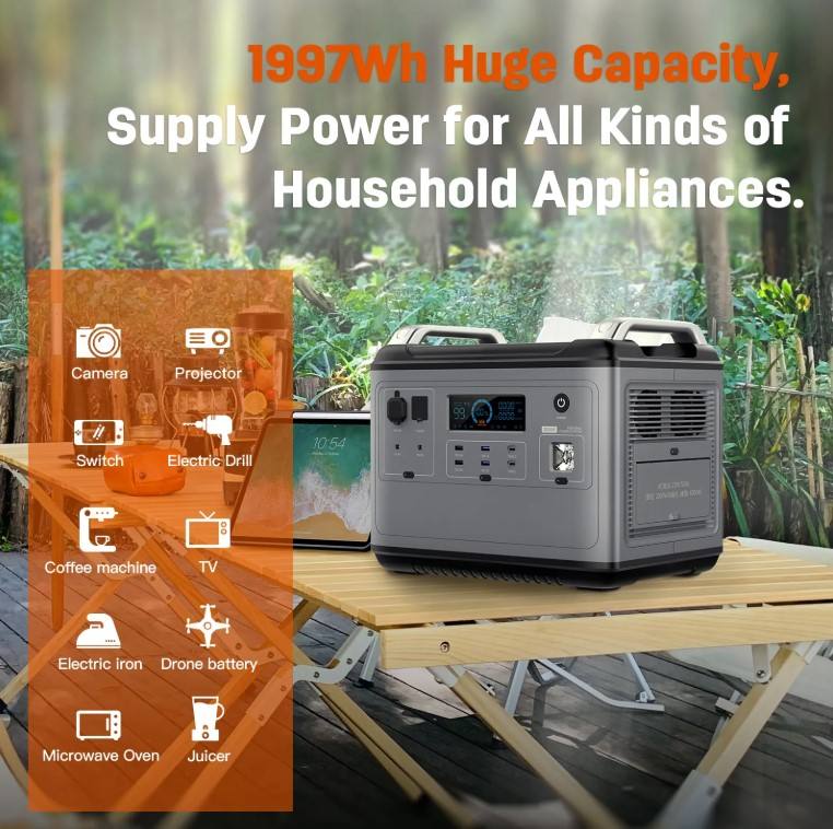 Sorein 2000W สถานีพลังงาน EU ชาร์จเร็วเครื่องกำเนิดไฟฟ้าพลังงานแสงอาทิตย์แบบพกพาแบตเตอรี่ LiFePO4 2kWh แบบพกพาสถานีพลังงานแบบพกพาที่มี APP