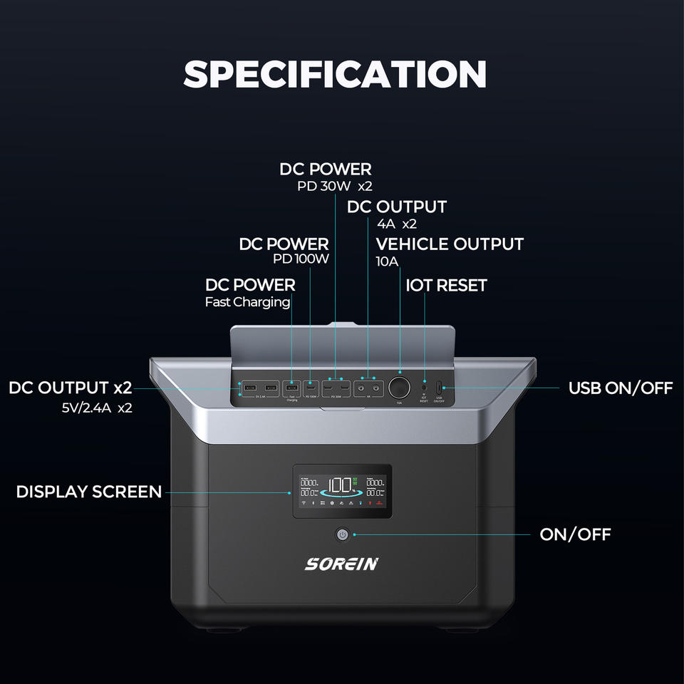 Sorein 2400W อุปกรณ์จ่ายไฟฉุกเฉินแบบพกพา, 2048wh แบตเตอรี่สำรองที่บ้าน