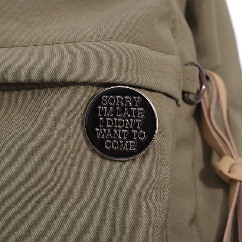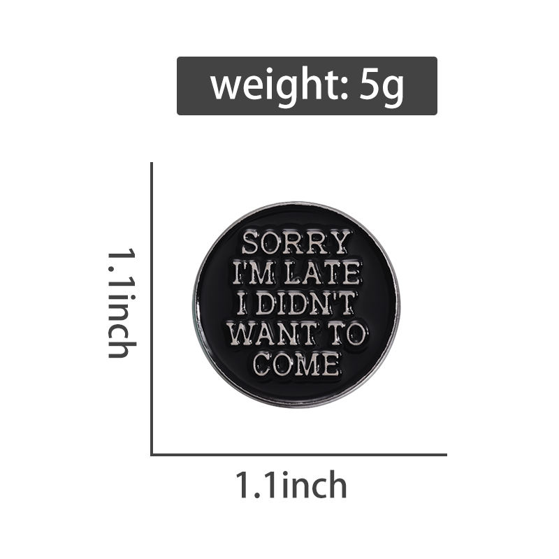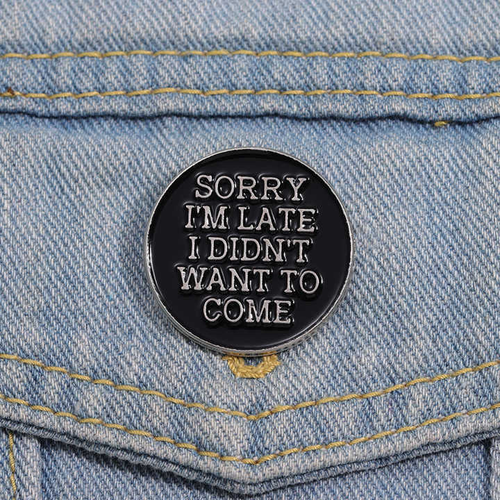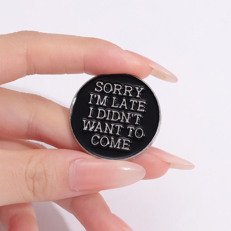 ขออภัยปิ่นปักผมเคลือบล่าช้าเข็มกลัดข้อความแบบกำหนดเองสนุกป้ายปกเสื้อป้ายโกธิคพังก์เครื่องประดับของขวัญในสต็อกขายส่ง