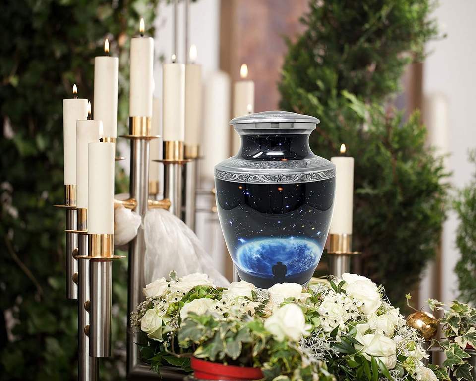 โกศใส่ศพของผู้ใหญ่ทำด้วยมือสำหรับขี้เถ้าของมนุษย์ทำจากโลหะ