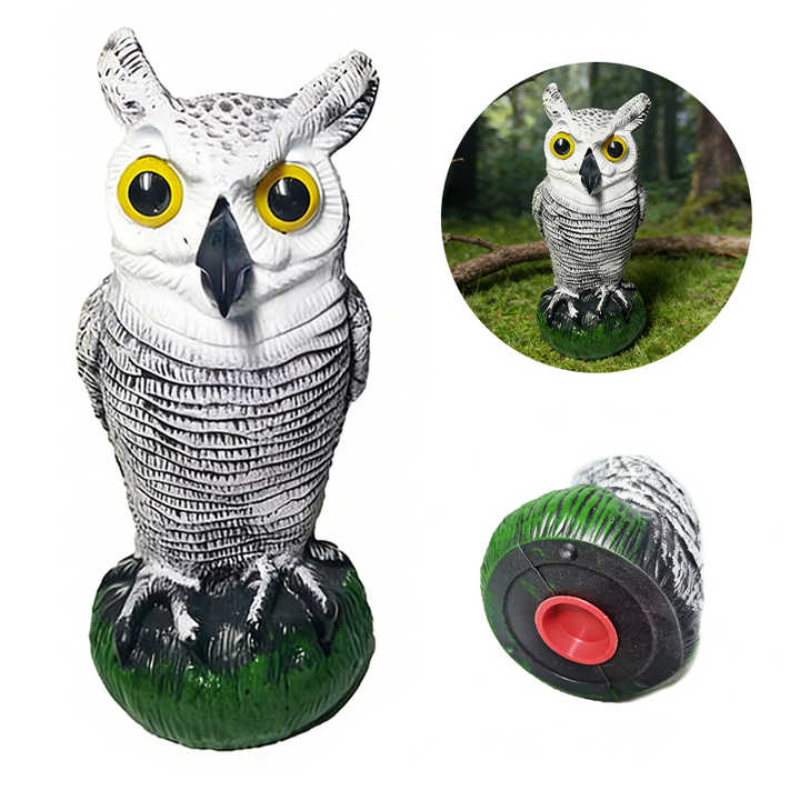 เหยื่อล่อรูปนกฮูก 3 มิติ เสียงและแสงสมจริง - สำหรับล่าสัตว์และไล่นกศัตริภายนอกอาคาร