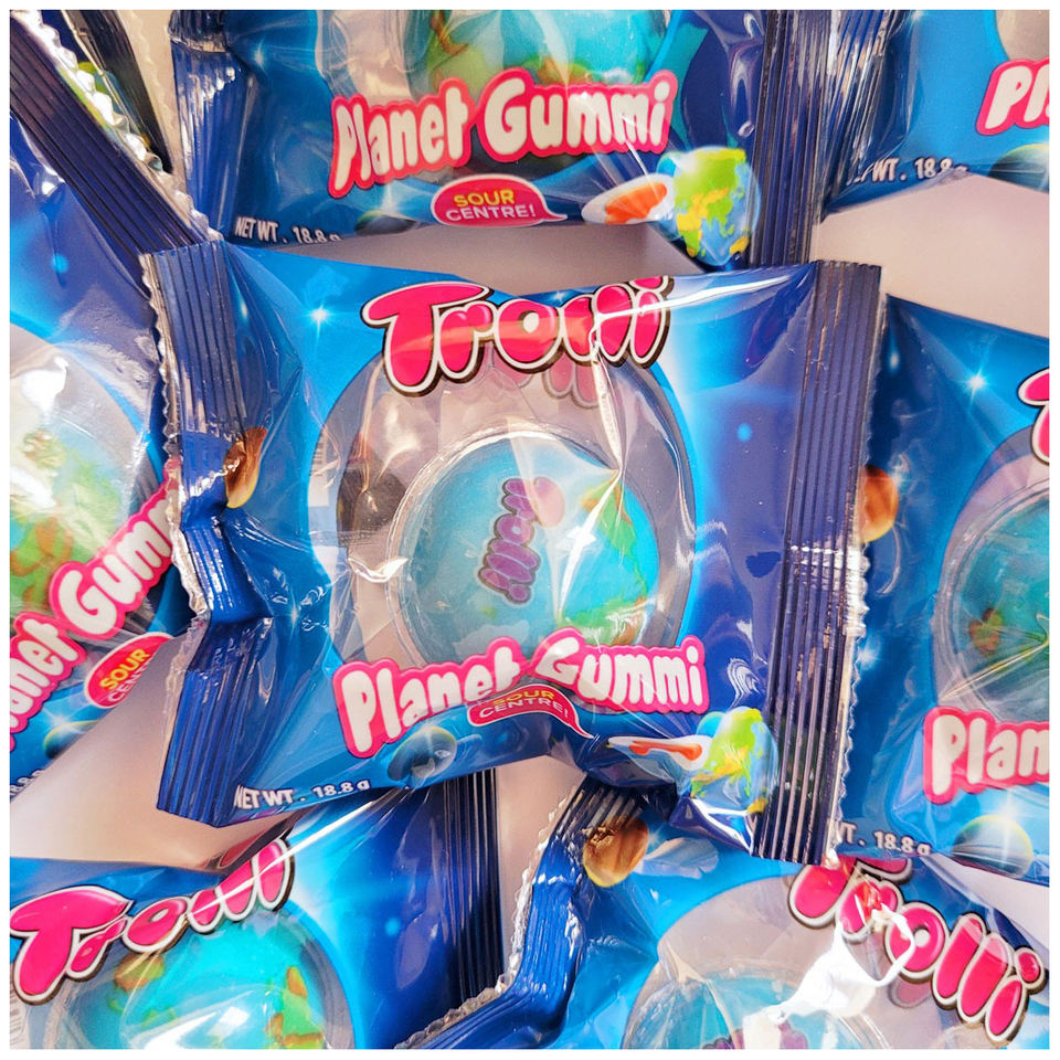 เยลลี่ผลไม้รสเปรี้ยว 60 ชิ้น/กล่อง (2.49 ปอนด์) ราคาถูก Trolli Planet Gumi 1.15 กก.