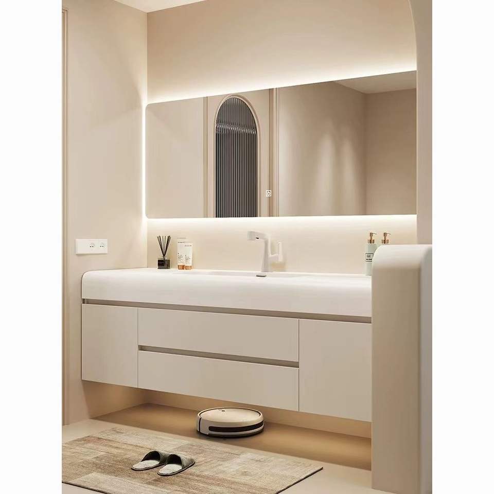 Kamalu SP-120C ตู้ห้องน้ำ120ซม. ทันสมัย & คลาสสิกพื้นผิวแข็งสีขาวเคาน์เตอร์อ่างเซรามิกยืนพื้น