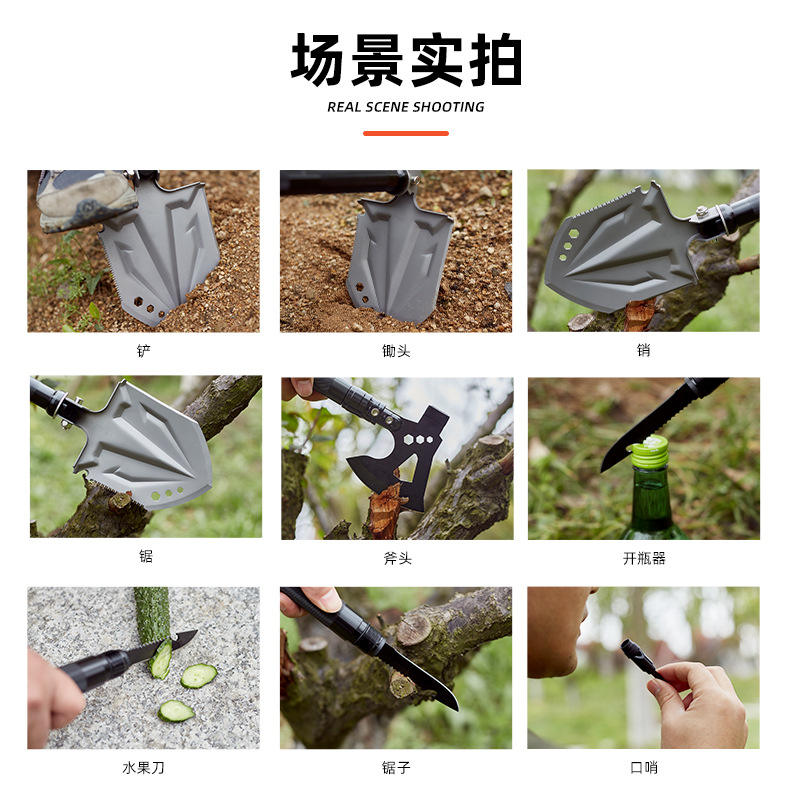 ชุดขวานและพลั่วอเนกประสงค์สำหรับกิจกรรมกลางแจ้งจาก Source Factory ผลิตจากเหล็กแมงกานีส พับได้ พร้อมกล่องเครื่องมือ สำหรับการเอาชีวิตรอดและการตั้งแคมป์