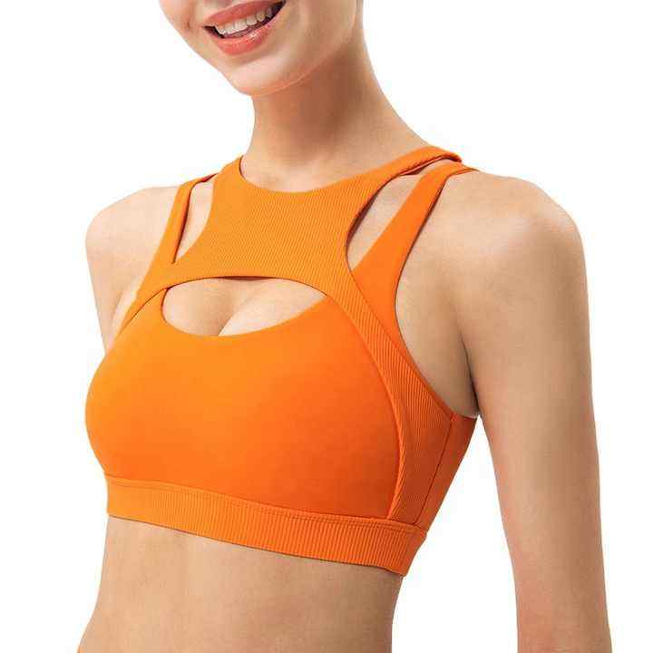 เสื้อครอปบราออกกำลังกายของผู้หญิงเสื้อครอปท็อปเนื้อนุ่มแบบกลวงมีโครงเสื้อออกกำลังกายเซ็กซี่