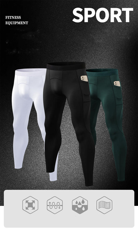 Source factory Professional Men's Performance Compression Pants – Quick-Dry, Secure Phone Pocket Breathable Athletic Leggings