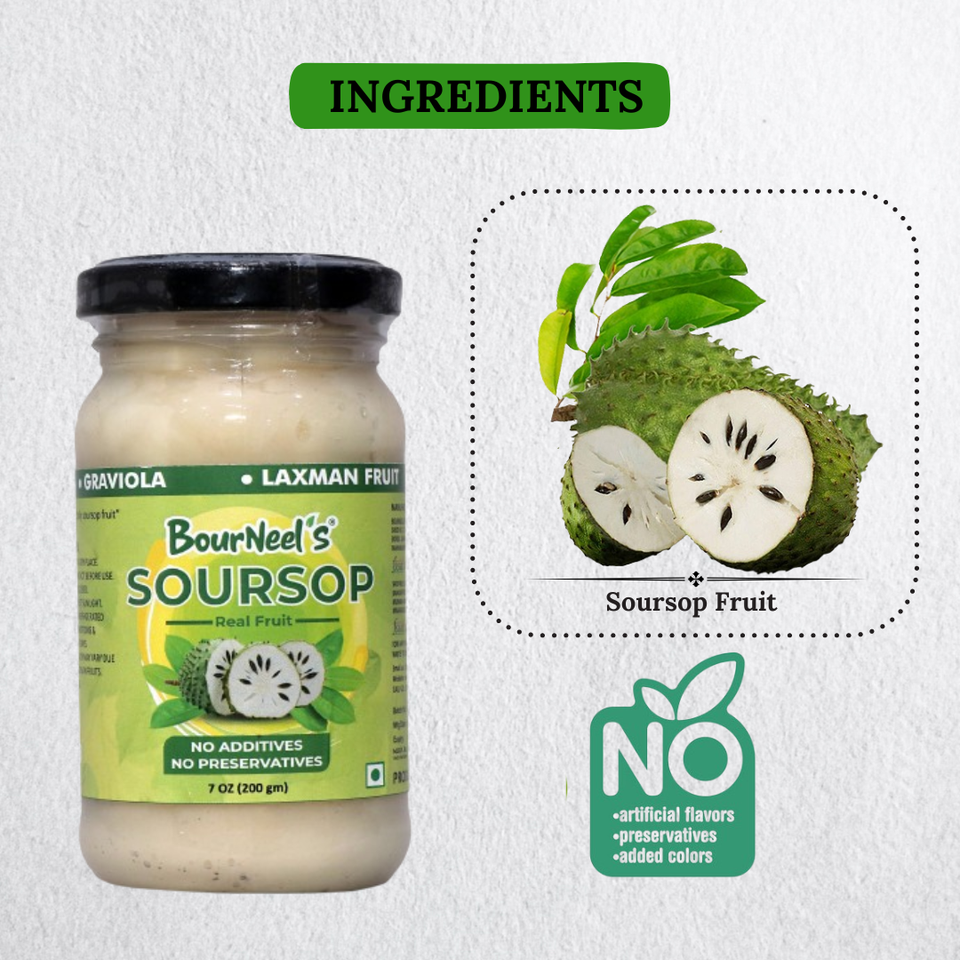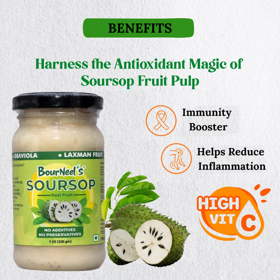 โถผลไม้ soursop 200 GM แพ็ค1ไม่ใส่สารกันบูด soosop graviola laxman phal Fruit high Vitamin C