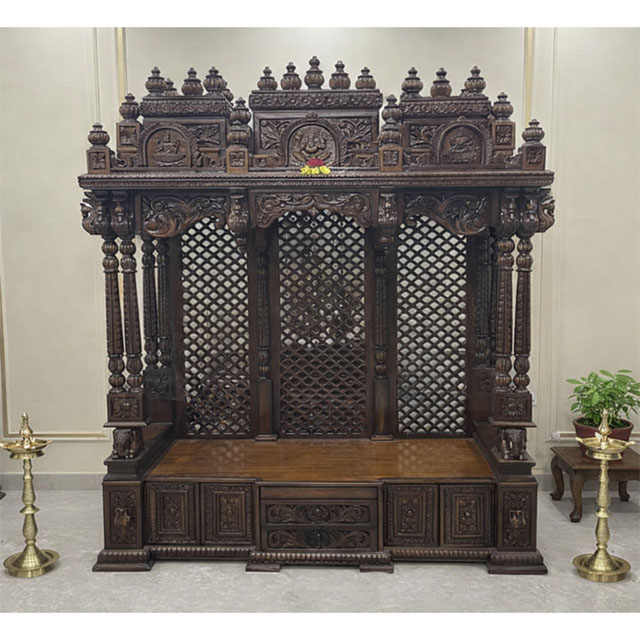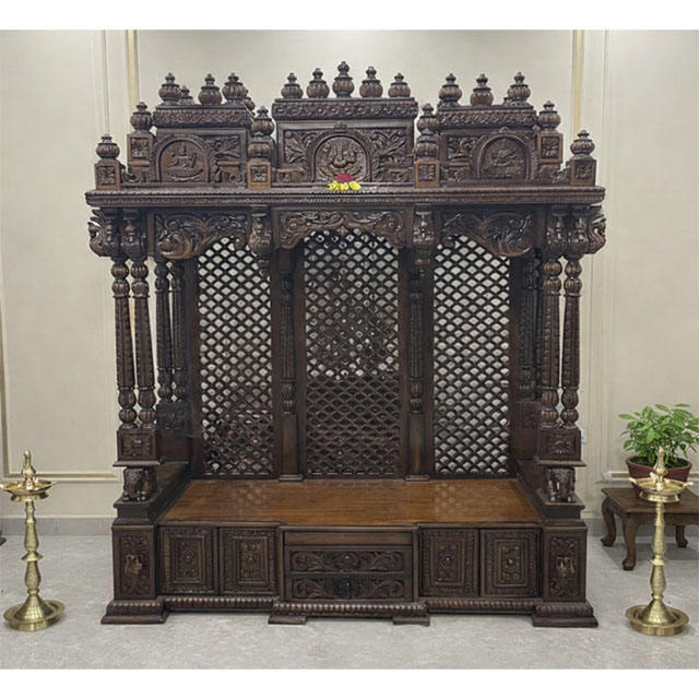 ชุดบูชาทำมือจากอินเดียใต้สำหรับบ้าน ซื้อหิ้งบูชาไม้สักแบบสั่งทำได้ตามต้องการ สไตล์ดราวีเดียนดั้งเดิม สำหรับบ้าน วัดในบ้าน สหรัฐอเมริกา