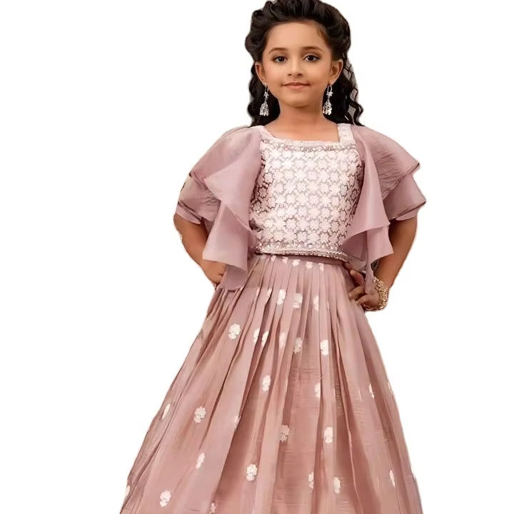 ชุดเดรสผ้าไหมผ้าไชน็อนสีสดใสปักลายเสื้อแฟนซีกับ lahenga สไตล์อินเดียใต้
