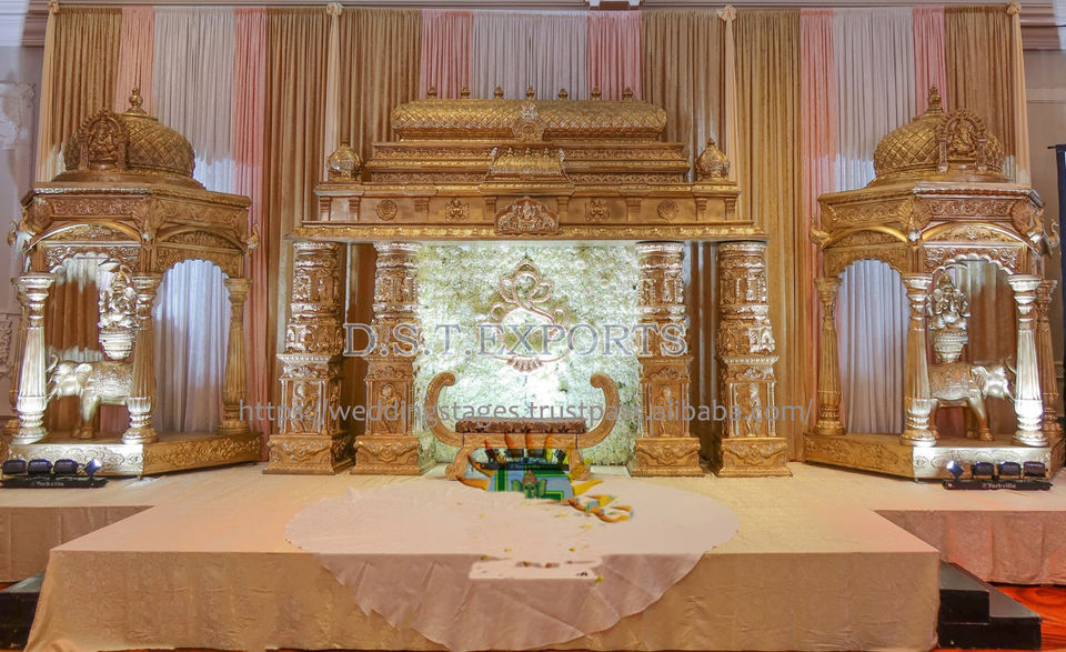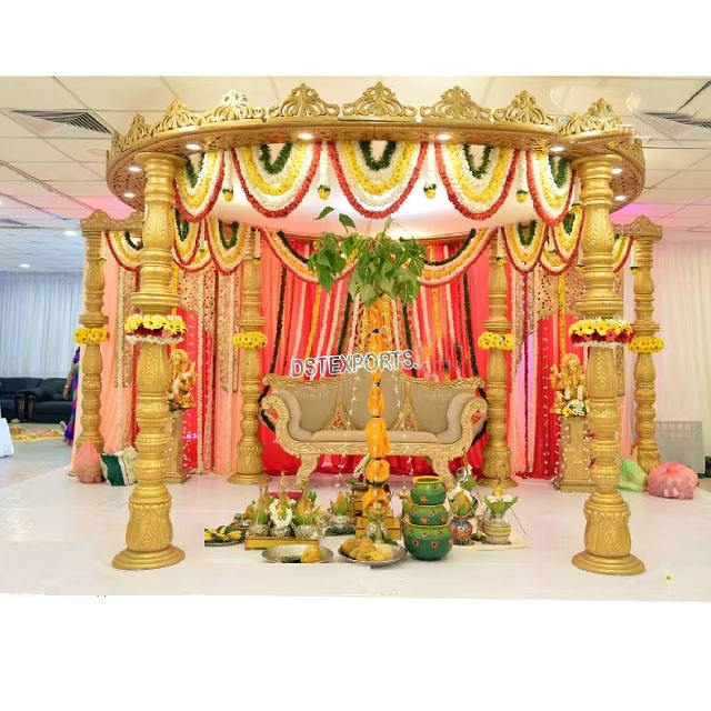 งานแต่งงานแบบอินเดียใต้ ศาลาไม้สำหรับพิธีแต่งงาน บริษัทดีเอสที เอ็กซ์พอร์ต จำหน่ายศาลาพิธีแต่งงานสีทองแบบราชสถาน ผู้ผลิตในออสเตรเลีย