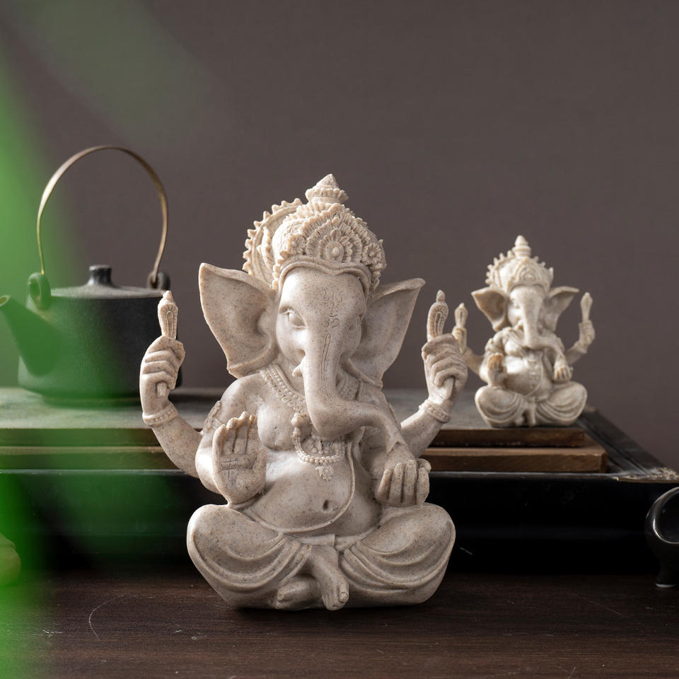 เครื่องประดับรูปหัวช้างพระพิฆเนศเรซิ่นจากเอเชียตะวันออกเฉียงใต้ | รูปปั้นเทพเจ้าอินเดียสไตล์เซนแบบไทย | งานฝีมือทำด้วยมือ วาดด้วยมือ แบบดั้งเดิม