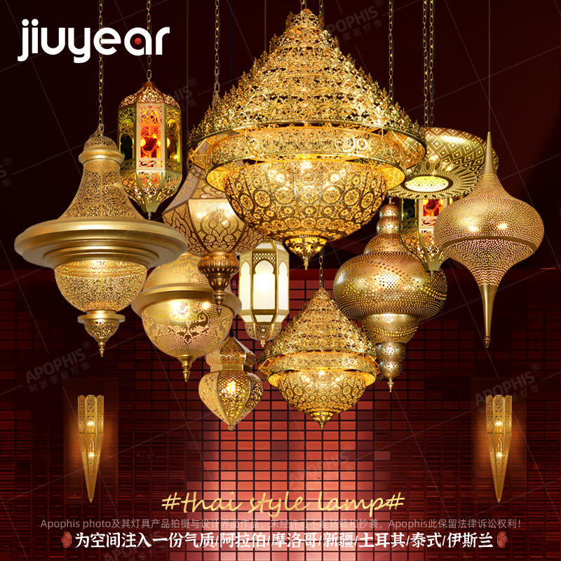 โคมไฟระย้าเหล็กสไตล์ไทยย้อนยุคเอเชียตะวันออกเฉียงใต้ สไตล์แปลกใหม่ซินเจียง สำหรับร้านอาหารตะวันตก ห้องน้ำชา โฮมสเตย์ บาร์ คลับ สร้างบรรยากาศ