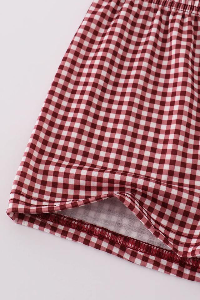 ชุดเดรสสำหรับเด็กชายและเด็กหญิงชุดเดรสพร้อมลายปักรูปลูกเห็บสีแดงเข้มชุดเสื้อผ้าสำหรับเด็กผู้ชายแสดงจิตวิญญาณของทีม