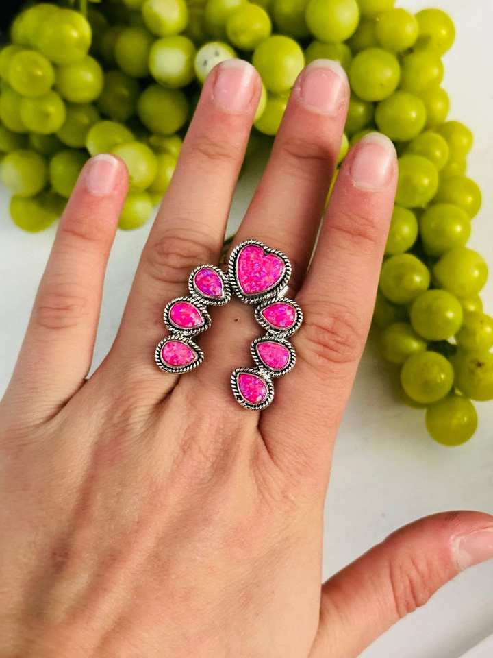 โอปอลสีชมพูทำด้วยมือตะวันตกเฉียงใต้และสเตอร์ลิงเงินปรับได้คลัสเตอร์ Naja แหวน