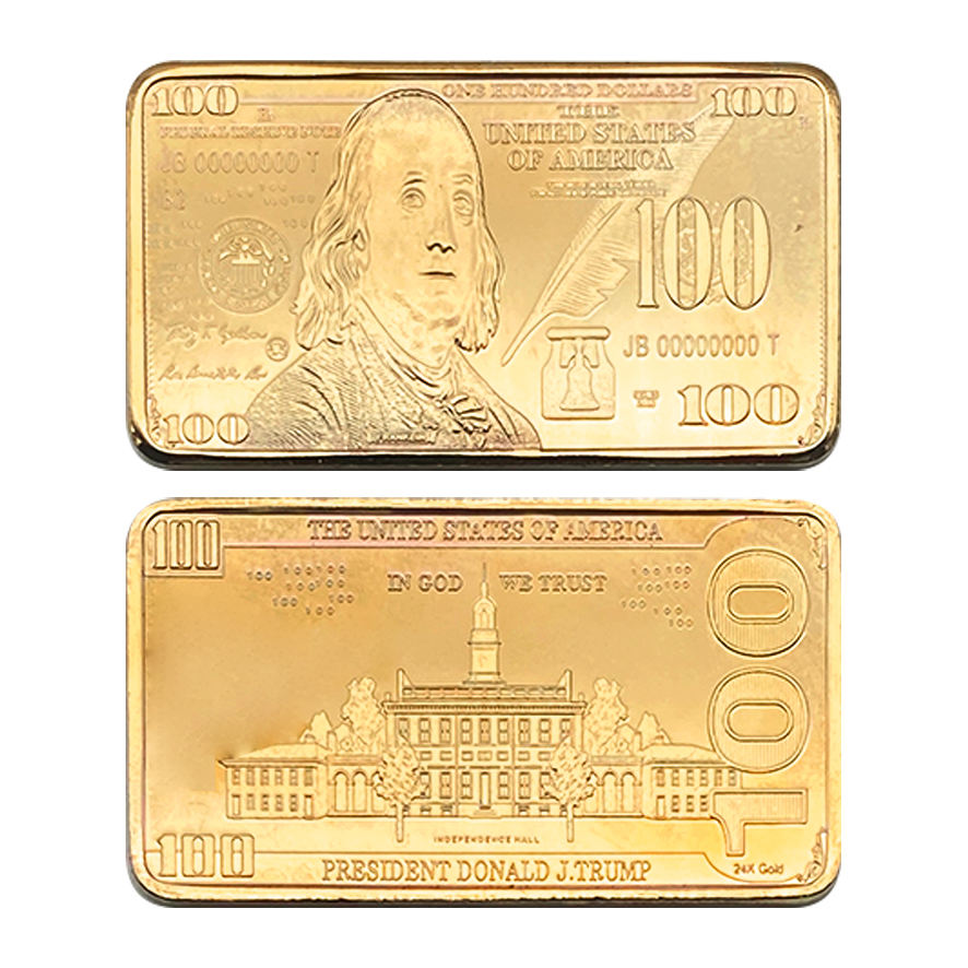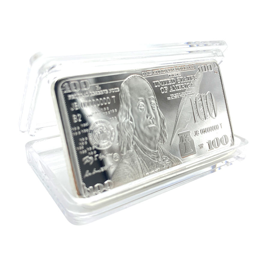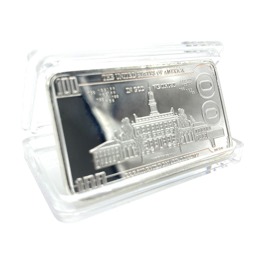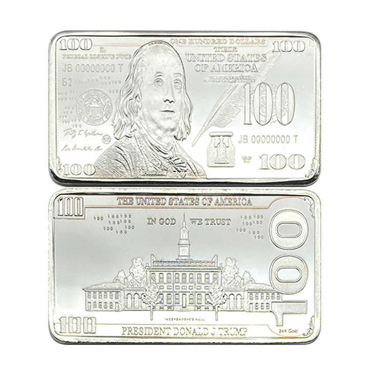 เหรียญที่ระลึกสหรัฐอเมริกา รูปทรงแท่งทองคำ ชุบทองคำขาว 100 ดอลลาร์