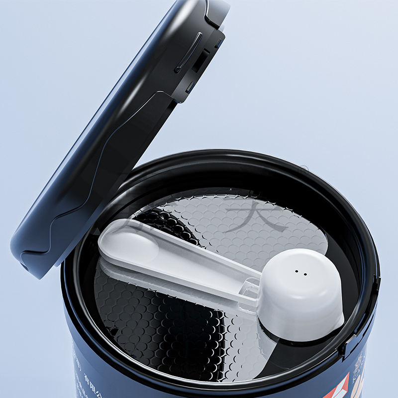 ผงโปรตีนถั่วเหลืองฝาปิดด้านบนฝาพลาสติกเปิดง่าย502โลโก้ IML พิมพ์บนด้านบนฉีดสองสี