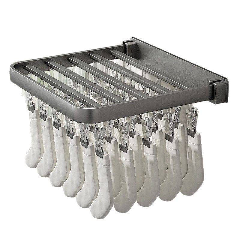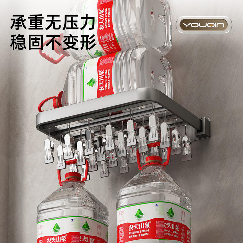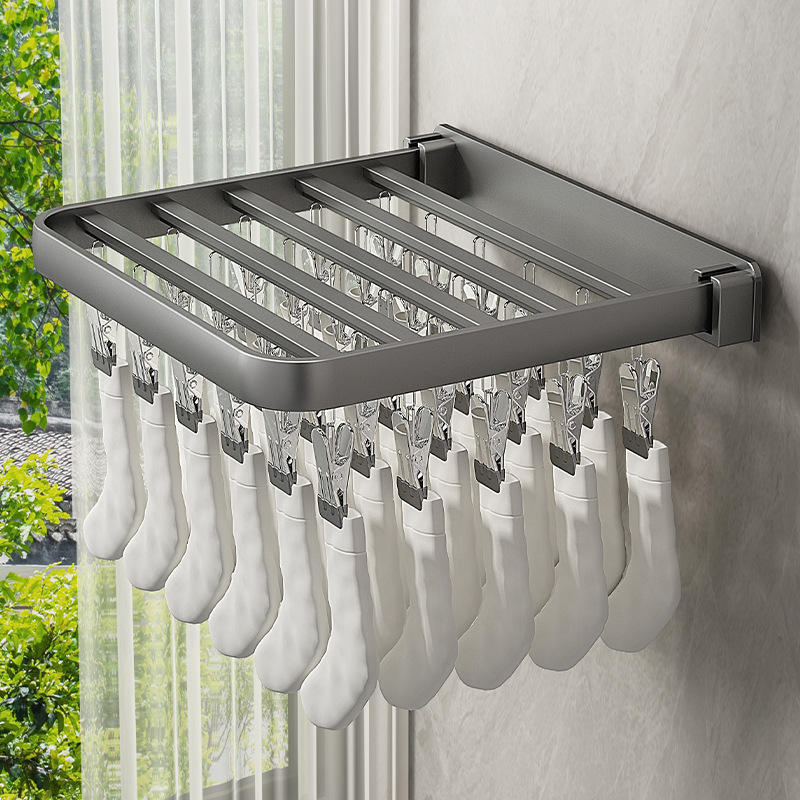 ราวตากผ้าแบบพับได้ติดผนังทำจากอะลูมิเนียมอวกาศ พร้อมคลิปหนีบหลายตัว สำหรับใช้ในห้องน้ำและระเบียง