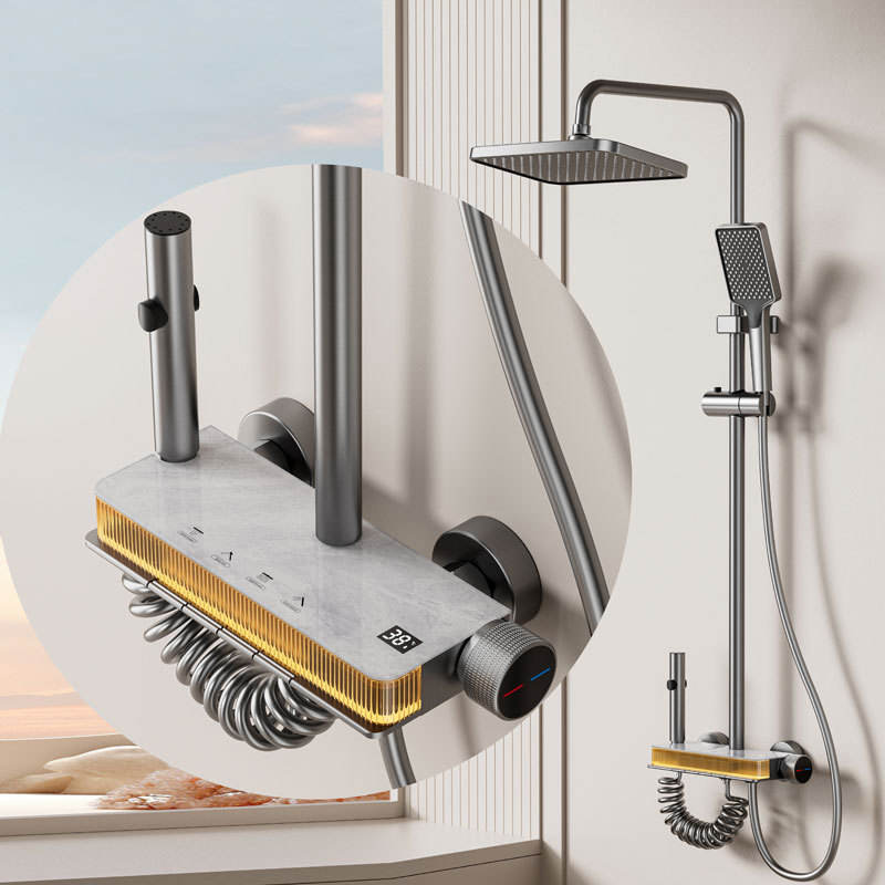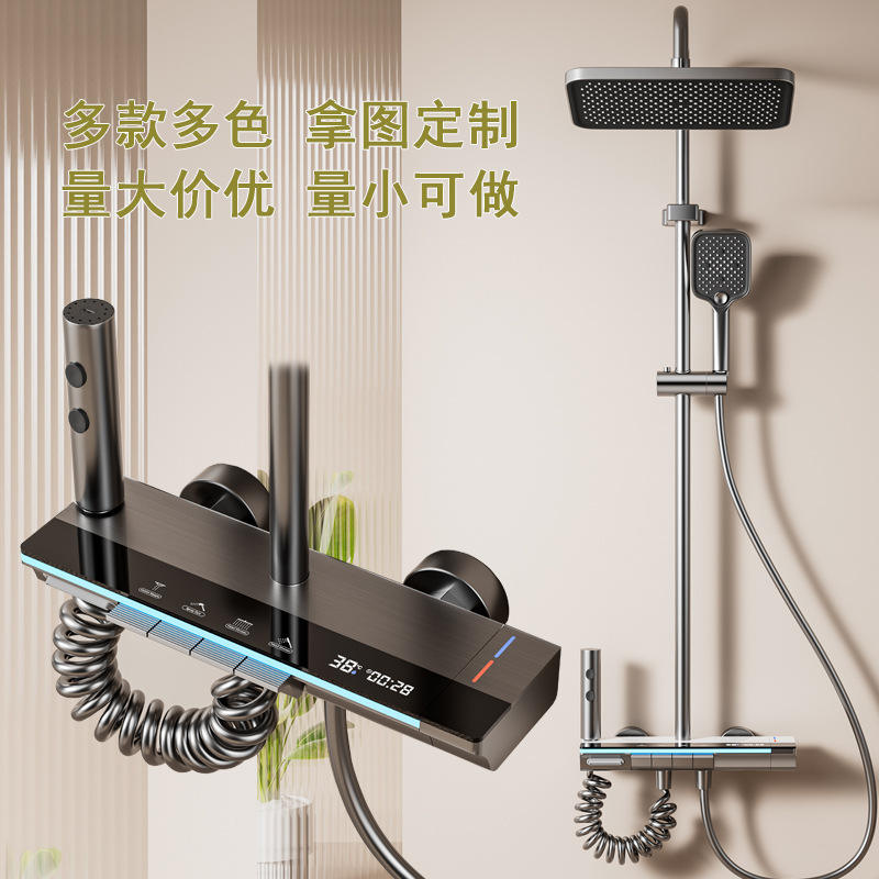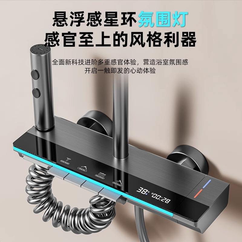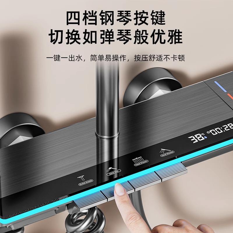 ชุดฝักบัวเทอร์โมสแตติกอะลูมิเนียมเคลือบโครเมียม พร้อมหน้าจอดิจิตอล ไฟส่องสว่างรอบข้าง ผิวด้าน รูปทรงสี่เหลี่ยมผืนผ้า ระบบเพิ่มแรงดันน้ำ