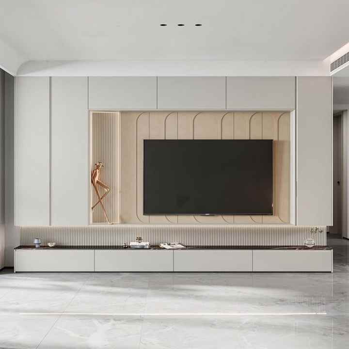 ตู้วางทีวีประหยัดพื้นที่ ดีไซน์ใช้งานได้จริง ตกแต่งสวยงาม เหมาะสำหรับห้องนั่งเล่นขนาดเล็กและจัดเก็บอุปกรณ์ทีวี