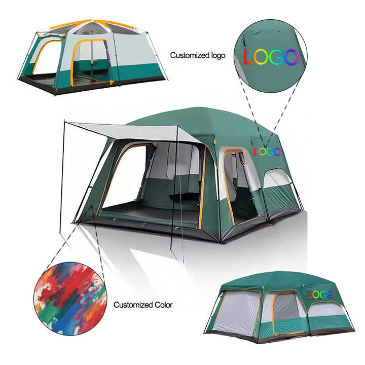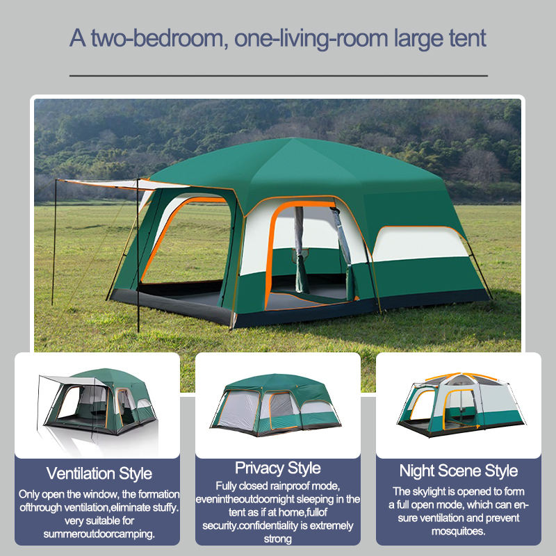 เต็นท์อ็อกซ์ฟอร์ดขนาดใหญ่สองห้องนอน สำหรับครอบครัว กลุ่มท่องเที่ยว กันน้ำได้ 1000-1500 มม. ใช้งานได้ทุกฤดู แบบสองชั้น ใช้งานได้จริง