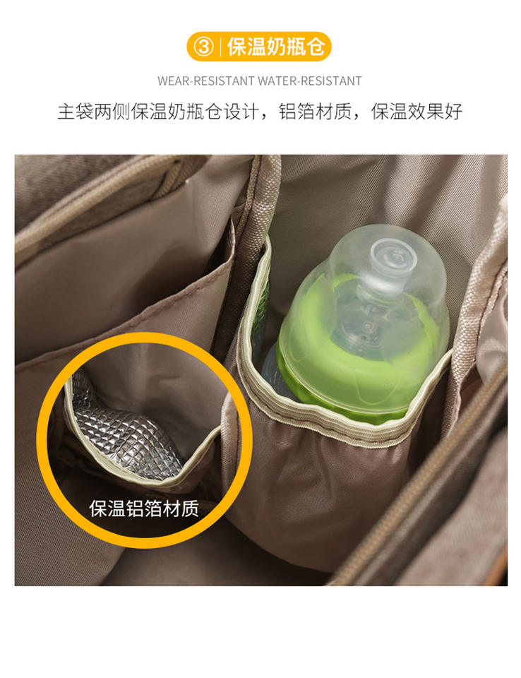 กระเป๋าใส่ผ้าอ้อมสำหรับคุณแม่ ขนาดใหญ่ ทนทานต่อการสึกหรอ กันน้ำ พร้อมช่องเก็บขวดนมแบบเก็บอุณหภูมิ สายรัดรถเข็นเด็ก และช่องเก็บของหลายช่อง