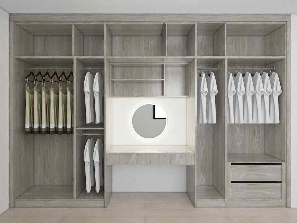 ตู้เสื้อผ้าที่กว้างขวางและมีสไตล์ พร้อมการตกแต่งด้วยไม้เมลามีน สำหรับพื้นที่อยู่อาศัยสมัยใหม่