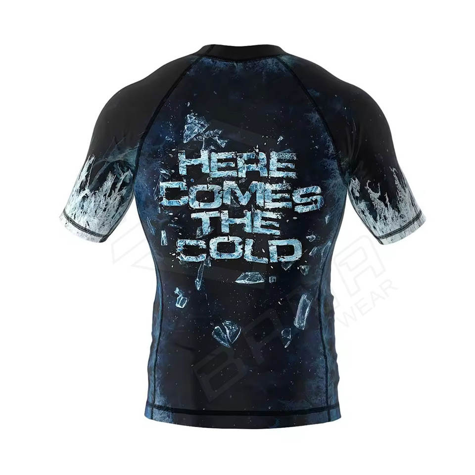 ชุดป้องกันผดผื่น MMA แบบระเหิดผ้าสแปนเด็กซ์พิมพ์ลายดิจิตอลชุดป้องกันผื่นคันแขนสั้น